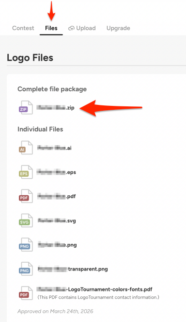 4. Double click the zip file under the "Complete file package" header Files (.zip format) to download your final files (if you haven't already)